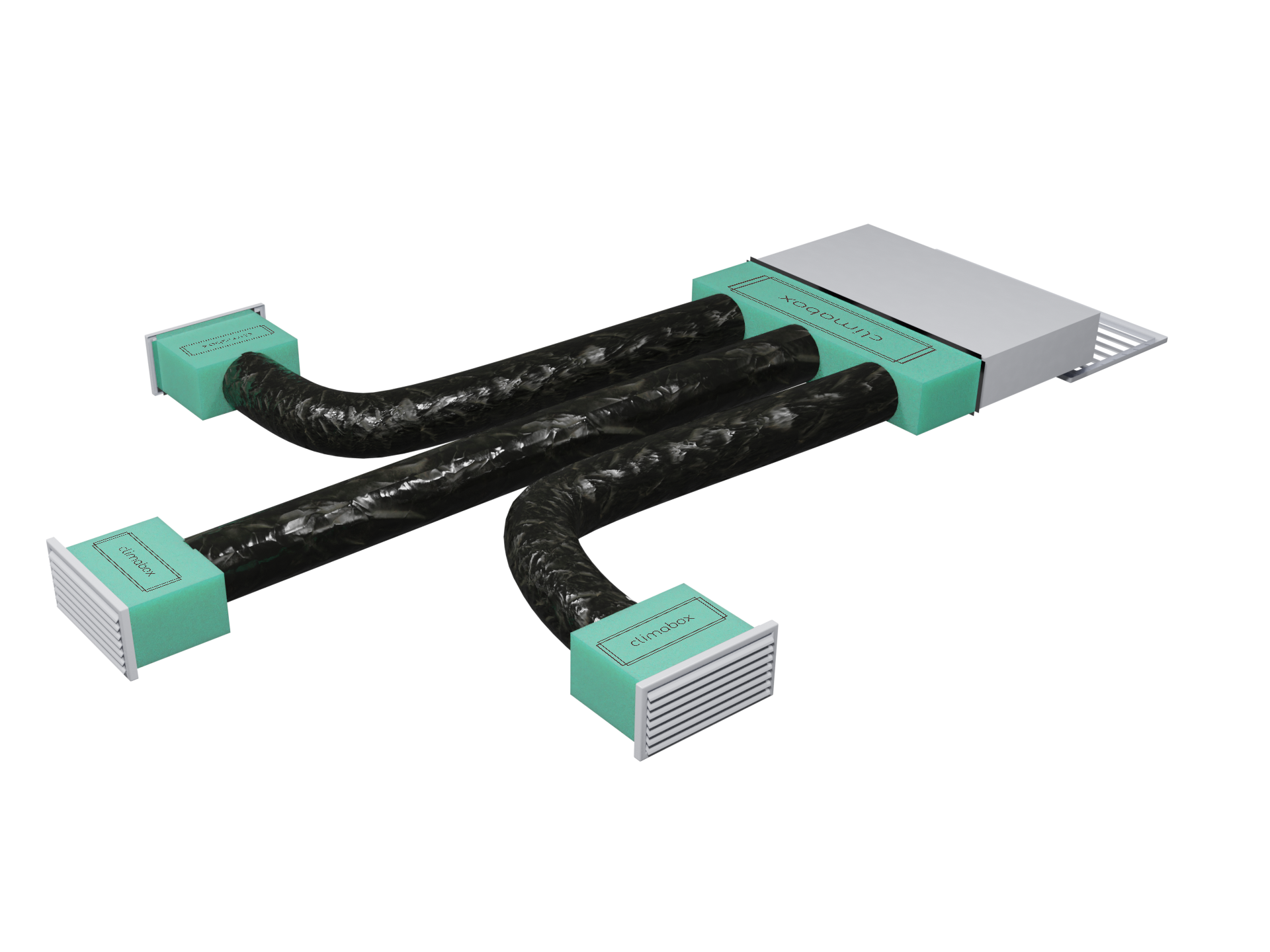 Kit completo per un canalizzato a 3 vie composto da: 1 Plenum macchina isolato con 3 attacchi flessibile 3 Climabox per le tue stanze 3