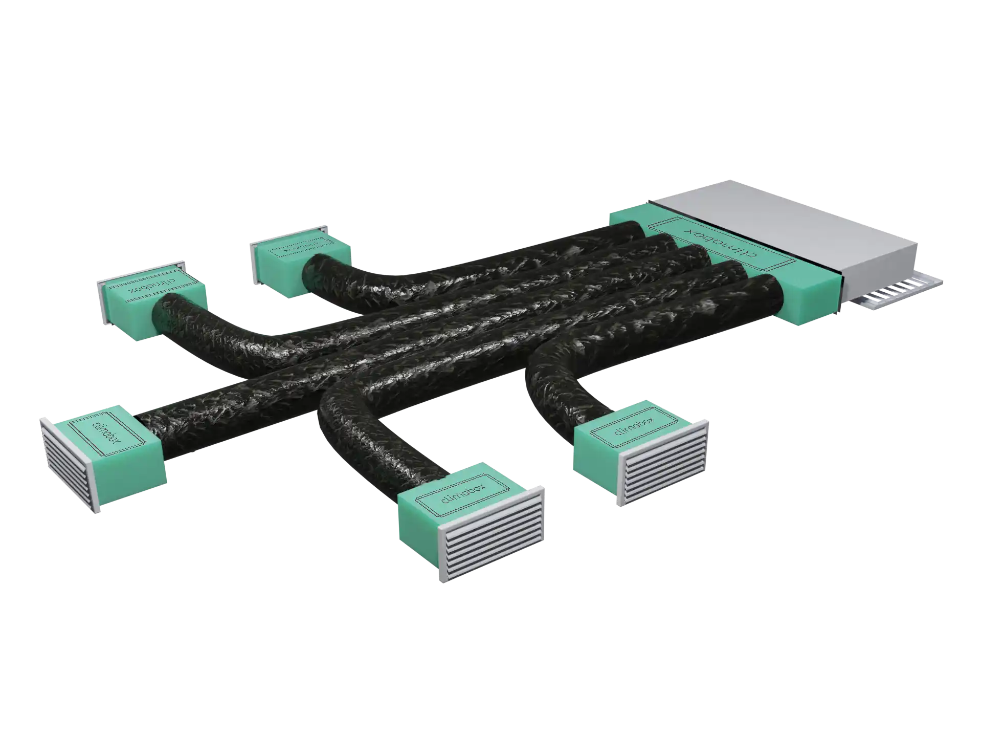 Kit completo per un canalizzato a 5 vie composto da: 1 Plenum macchina isolato con 5 attacchi flessibile 5 Climabox per le tue stanze 5